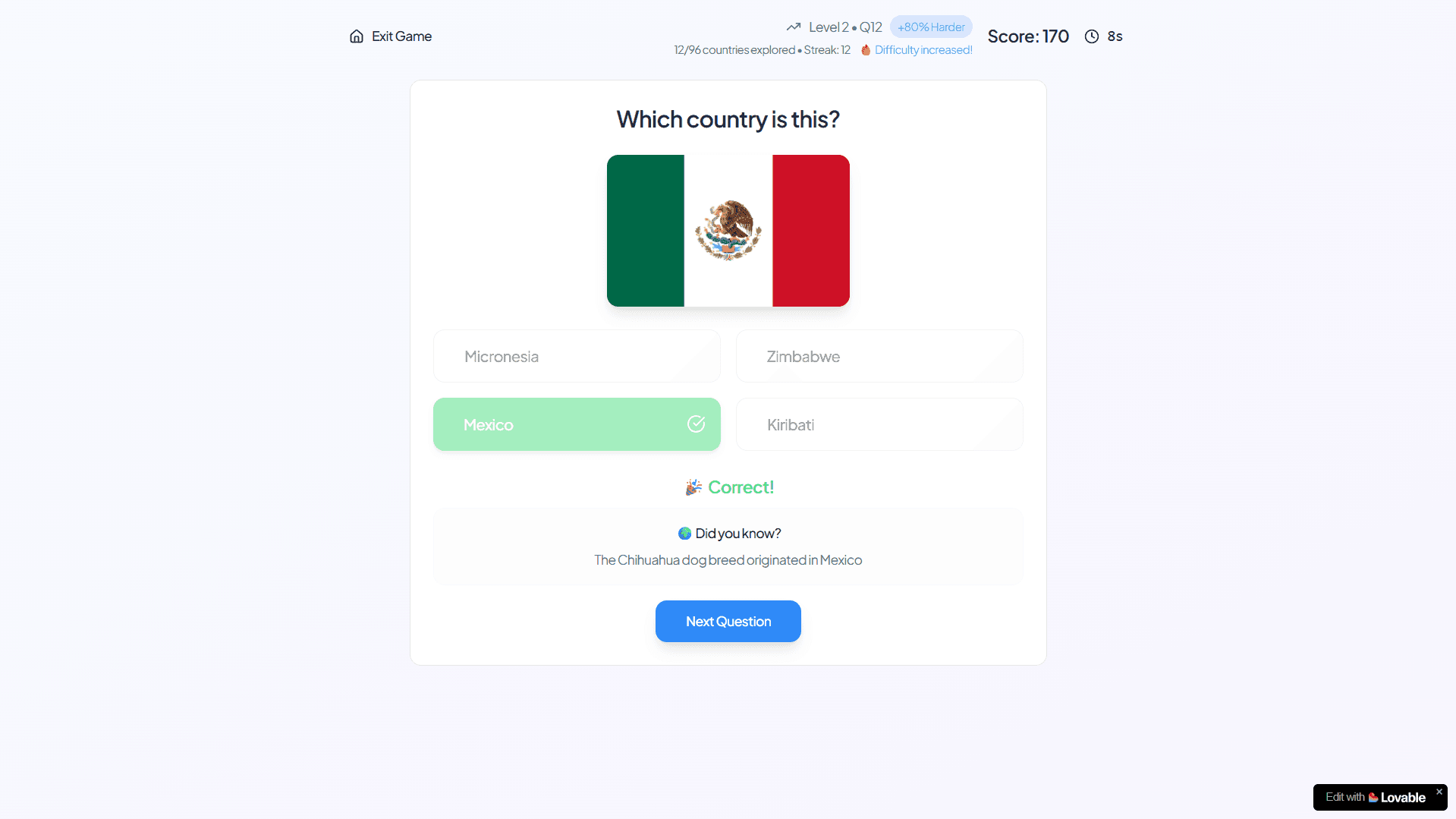 An AI-powered geography game to guess flags and capitals while learning about countries.