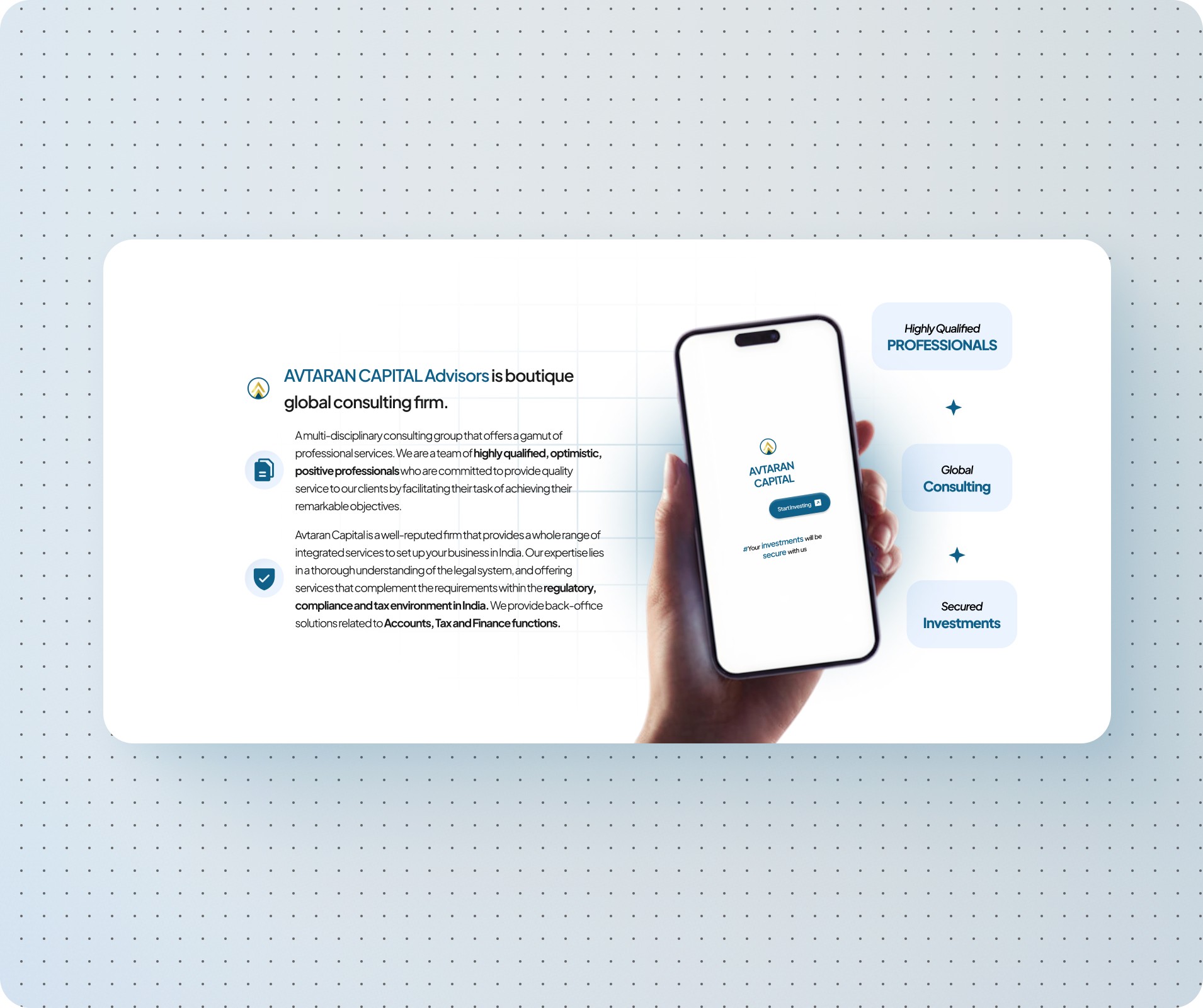 Avataran Capital is a Dubai-based capital advisory and consulting firm working with businesses and investors across international markets. While the firm operated in a high-stakes financial domain, its previous website failed to reflect the credibility, sophistication, and global outlook expected from a professional advisory firm.